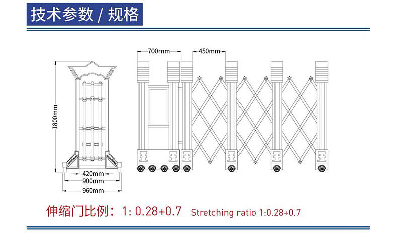 8.抗風結構裝置不但有很強的抗風性能,能確保電動門在強風吹襲下仍能照常運行,其結構能有效減小抗風鉤與導軌的摩擦阻力,提升門體的運行效率。